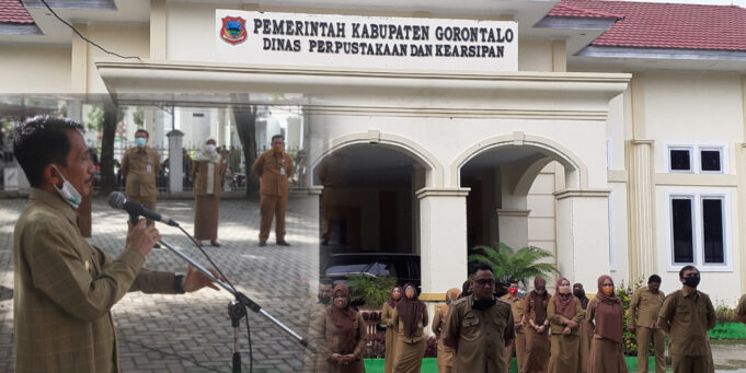 GORONTALO GEMILAN (barometernewsgocom)-Bupati Gorontalo Nelson Pomalingo kembali melakukan pembinaan kepada ASN di Lingkungan Dinas Perpustakaan dan Kearsipan Kabupaten Gorontalo, sekaligus meninjau kondisi kantor dalam rangka penerapan Norma Perilaku Baru (New Normal).
