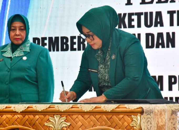 GORONTALO (barometernewsgo.com)-Ketua Tim Penggerak PKK Provinsi Gorontalo, Nani Ismail Mokodongan, melantik Ketua Tim Penggerak PKK dan Ketua Tim Pembina Posyandu Kabupaten/Kota Provinsi Gorontalo masa bakti 2025-2030 di Aula Rumah Jabatan Gubernur pada Selasa, (08/04/ 2025).
