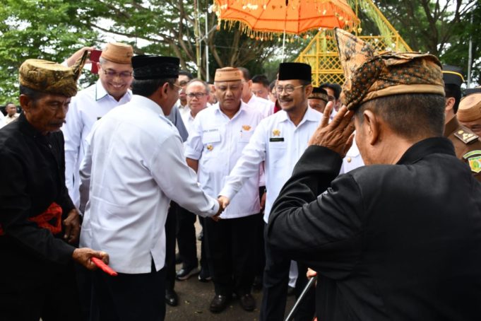 BOALEMO DAMAI (barometernewsgo.com)-Bupati Boalemo Darwis Moridu menyambut Menteri Pertanian RI Dr.H. Syahrul Yasin Limpo,SH,Msi,MH di bandara Jalaludin Isimu. Rabu (5/2/2020). Kedatangan Menteri Pertanian di Gorontalo ini disambut secara adat oleh Pemerintah Provinsi Gorontalo.