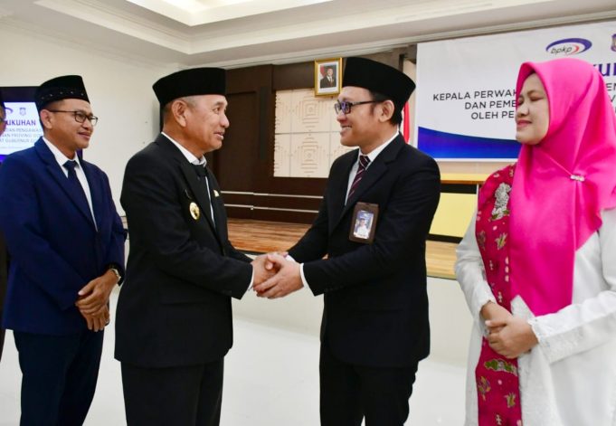 GORONTALO (barometernewsgo.com)-Bupati Pohuwato Saipul A. Mbuinga menyampaikan icapan selamat bertugas di Provinsi Gorontalo saat menghadiri acara pengukuhan Kepala Perwakilan Badan Pengawasan Keuangan dan Pembangunan (BPKP) Provinsi Gorontalo di Aula Rumah Jabatan Gubernur Gorontalo, Jum’at, (20/12/2024).