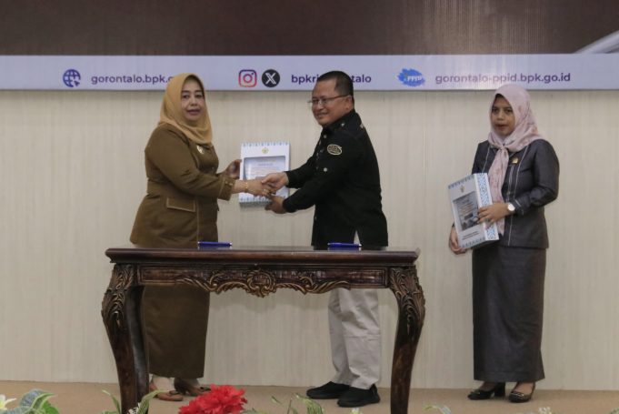 POHUWATO (barometernewsgo.com)-Wakil Bupati Pohuwato, Suharsi Igirisa, menghadiri Penyerahan Laporan Hasil Pemeriksaan (LHP) Tahun 2023 hingga Semester I Tahun 2024 di Auditorium Kantor BPK RI Perwakilan Provinsi Gorontalo, Selasa, (07/01/2025).