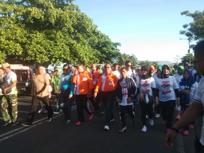 GORONTALO GEMILANG (barometernewsgo.com)-Guna memperingati hari Patriotik 23 Januari ke 78, Bupati Kabupaten Gorontalo (Kabgor) Prof Nelson Pomalingo dan Kerukunan Keluarga Indonesia Gorontalo (KKIG) melaksanakan jalan sehat, Sabtu (25/1/2020).