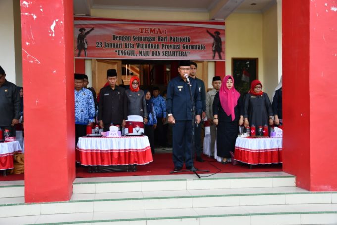 BOLAEMO DAMAI (barometernewsgo.com)-Wakil Bupati Anas Yusuf menjadi inspektur pada Upacara Hari Patriotik 23 Januari yang ke 78 Tingkat Provinsi Gorontalo yang berlangsung di depan Kantor Bupati Boalemo, Desa Limbato Kacamatan Tilamuta. Kamis, (23/1/2020)