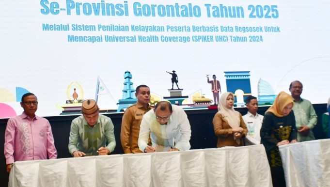 GORONTALO (barometernewsgo.com)-Pemerintah Provinsi Gorontalo, Pemerintah Kabupaten dan Kota se Gorontalo melakukan penandatangan Nota Kesepahaman (MOU) dan Rencana Kerja (RK) dengan Badan Penyelenggara Jaminan Sosial (BPJS) Kesehatan Kedeputian Wilayah Sulawesi Utara, Tengah, Gorontalo, dan Maluku Utara (Suluttenggomalut).