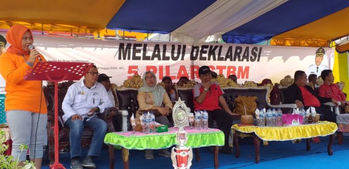 BOALEMO DAMAI (barometernewsgo.com)-Asisten II Bidang Pembangunan Setda Kabupaten Boalemo Roswita Manto mewakili Bupati Boalemo Darwis Moridu menghadiri deklarasi Stop Buang Air Besar Sembarangan (BABS) serta deklarasi 5 pilar Sanitasi Total Berbasis Masyarakat (STBM) bertempat di Desa Olibuu...