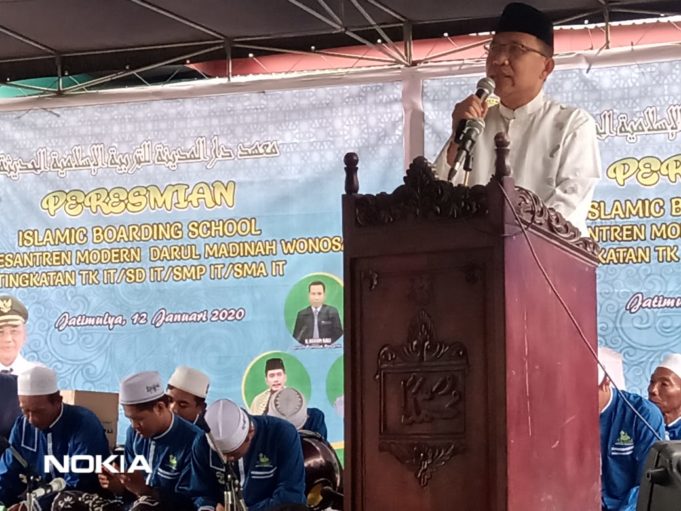 BOALEMO DAMAI (barometernewsgo.com)- Wakil Bupati Boalemo Anas Yusuf mengahadiri Peresmian Pondok Pesantren Darul Madina dengan dirangkaikan dengan gunting pita, di Desa Jati Mulya kecamatan Wonosari Kabupaten Boalemo.Minggu (12/1/2020).