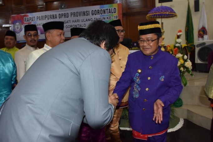 GORUT CERIA (barometernewsgo.com) - Bupati Gorontalo Utara, DR. Hi. Indra Yasin,SH,MH menghadiri sidang Paripurna Istimewa Dalam rangka memperingati Hari Ulang Tahun (HUT) Provinsi Gorontalo yang ke-19 tahun 2019, (5/12) kemarin.