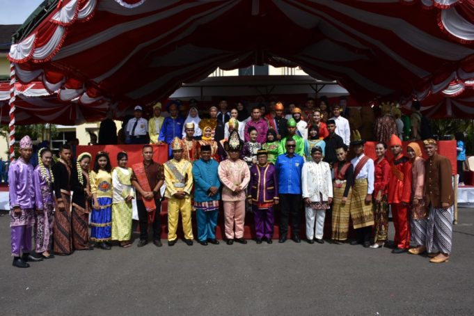 Bupati Gorut, Indra Yasin menyampaikan, baju adat se-Nusantara yang dikenakan oleh jajaran pejabat di...