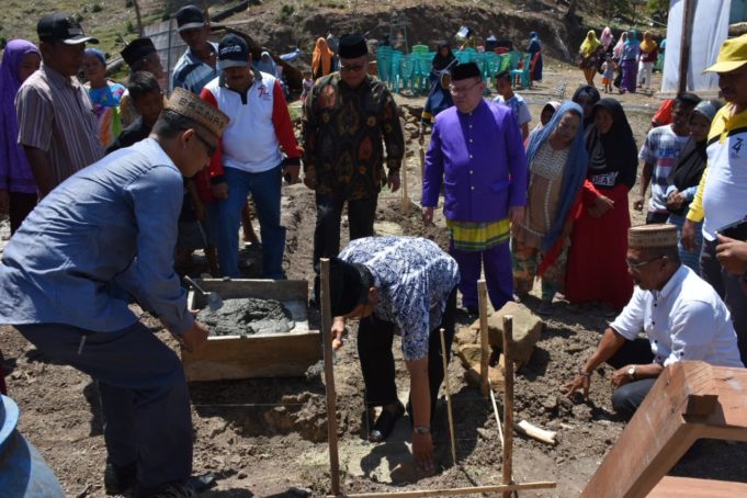 Yasin melakukan peeletakan batu pertama pembangunan Rumah Sejahtera, di Desa