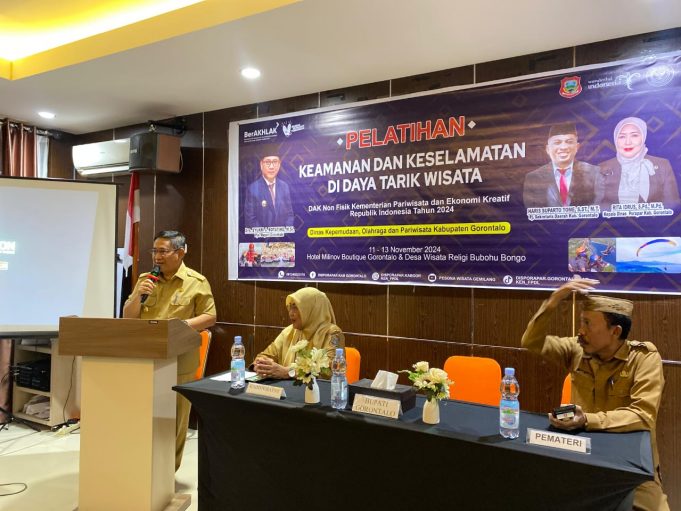 KABGOR (barometernewsgo.com)-Dalam rangka menarik minat para wisatawan untuk datang ke destinasi wisata yang ada di Kabupaten Gorontalo, Dinas Kepemudaan, Olahraga dan Pariwisata Kabupaten Gorontalo melaksanakan kegiatan pelatihan untuk para pengelola Objek Wisata.