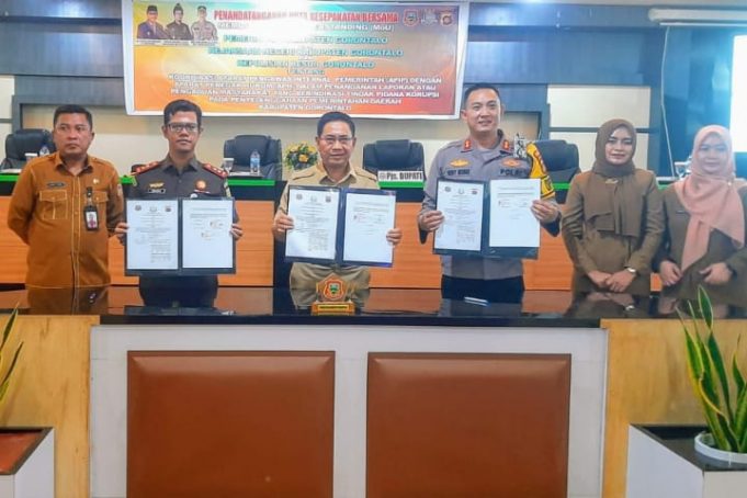 KABGOR (barometernewsgo.com)-Dalam rangka mengoptimalkan fungsi pengawasan pembangunan, Pemerintah Kab. (Pemkab) Gorontalo menandatangani nota kesepahaman (MOU) dengan Aparat Pengawas Internal (APIP) dan Aparat Penegak Hukum (APH) dalam hal ini Kepolisian Resort Gorontalo dan Kejaksaan Negeri Kab. Gorontalo, Selasa...