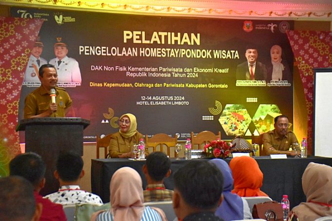 KABGOR (barometernewsgo.com)-Melalui Dinas Pariwisata Kepemudaan, Olahraga, dan Pariwisata (Disporapar), Pemerintah Kabupaten Gorontalo melaksanakan kegiatan Pelatihan Pengelolaan Homestay dan Pondok Wisata tahun 2024.