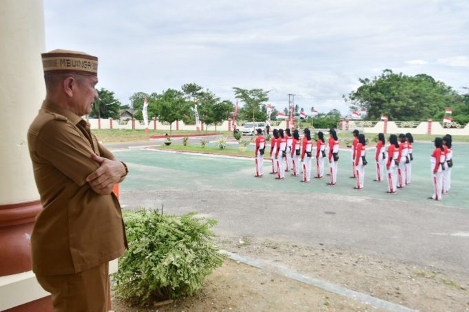 POHUWATO (barometernewsgo.com)-Bupati Pohuwato, Saipul A. Mbuinga mengapresiasi semangat Anggota Pasukan Pengibar Bendera Pusaka (Paskibraka) Kab. Pohuwato dalam berlatih.
