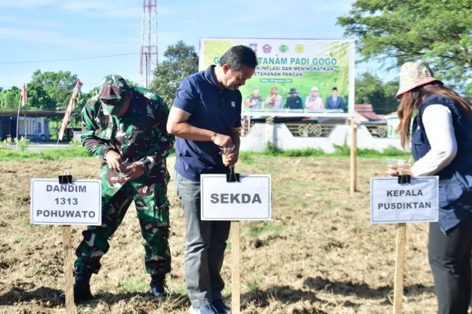POHUWATO (barometernewsgo.com)-Sekda Kab. Pohuwato Iskandar Datau menghadiri pencanangan Gerakan Menanam Padi Gogo di halaman Kantor Bupati sementara, Sabtu (3/8).