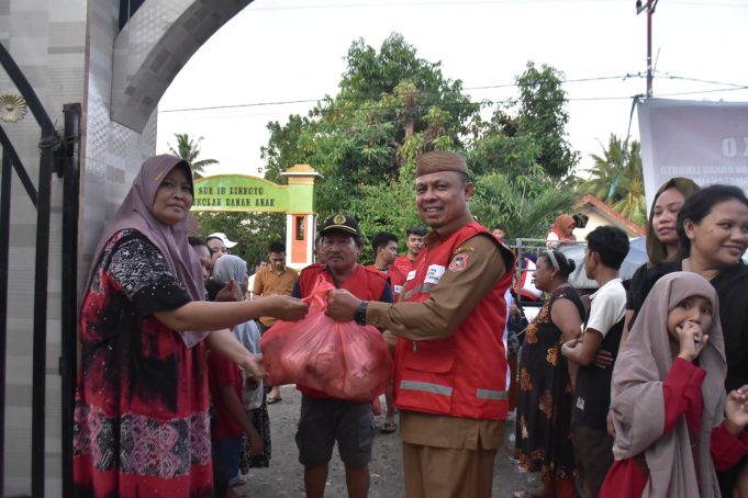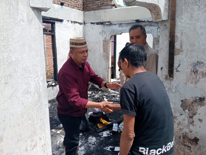 KABGOR (barometermewsgo.com)-Sekretaris Daerah Kab. Gorontalo Dr. Roni Sampir didampingi Kepala Dinas Sosial menyerahkan bantuan bagi korban kebakaran di Kelurahan Dutulanaa Kec. Limboto, Sabtu, (13/6/24).